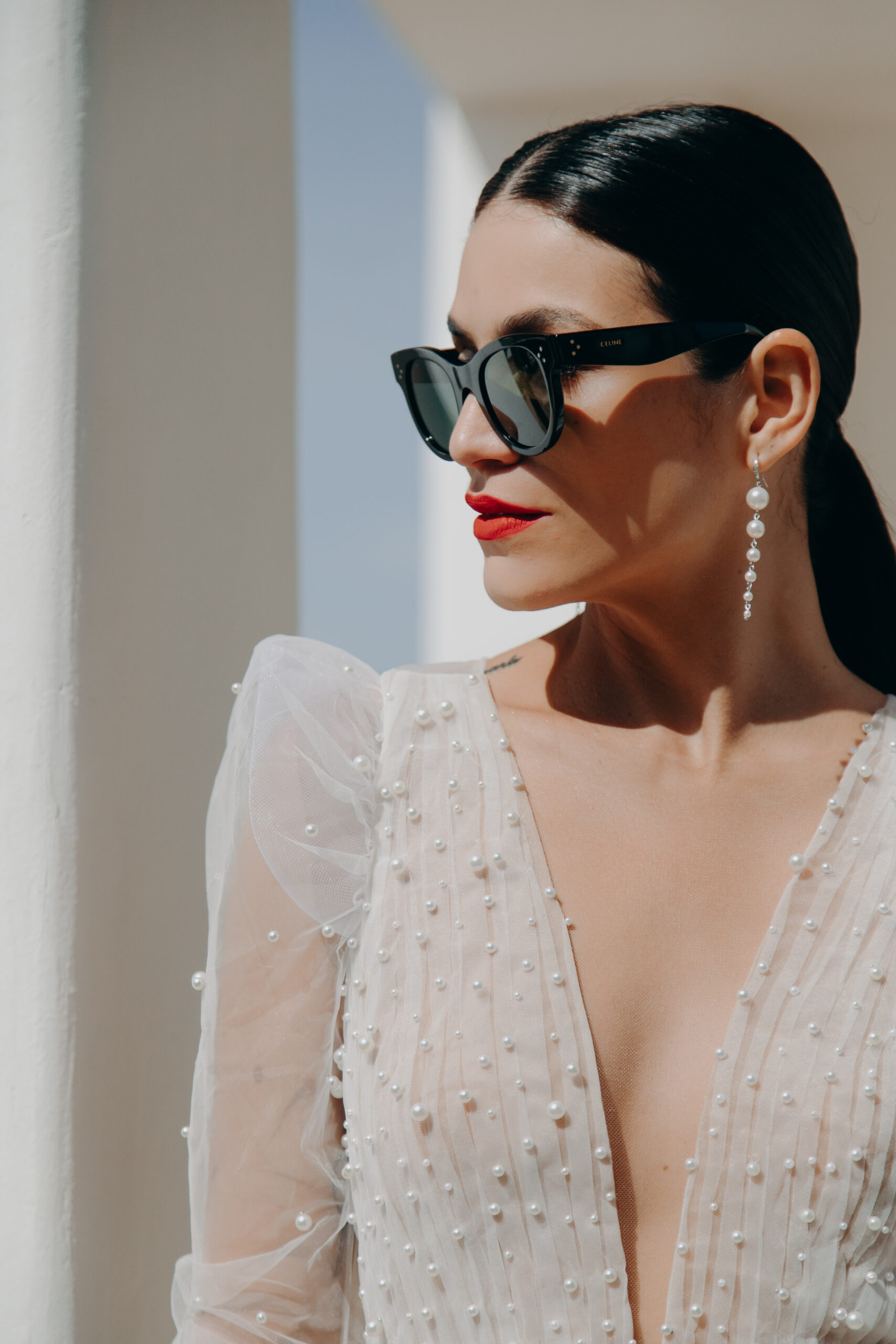 Voilà une mariée enjouée et radieuse, prête à danser jusqu’au bout de la nuit, parée pour les soirées blanches de Saint-Tropez. Que ce soit par le biais de ses manches over-size ou de sa jupe de paillettes argentées DRAGONERA, elle se remarque et s’assume. Sa tenue joue, cette année plus encore, sur les longueurs et les transparences, qu’elle s’enveloppe dans le tulle diaphane de FORMONTERA qui prend vie grâce au souffle d’une brise d’été ou qu’elle se drape d’une ondulante jupe longue nouée à la taille PORROS.