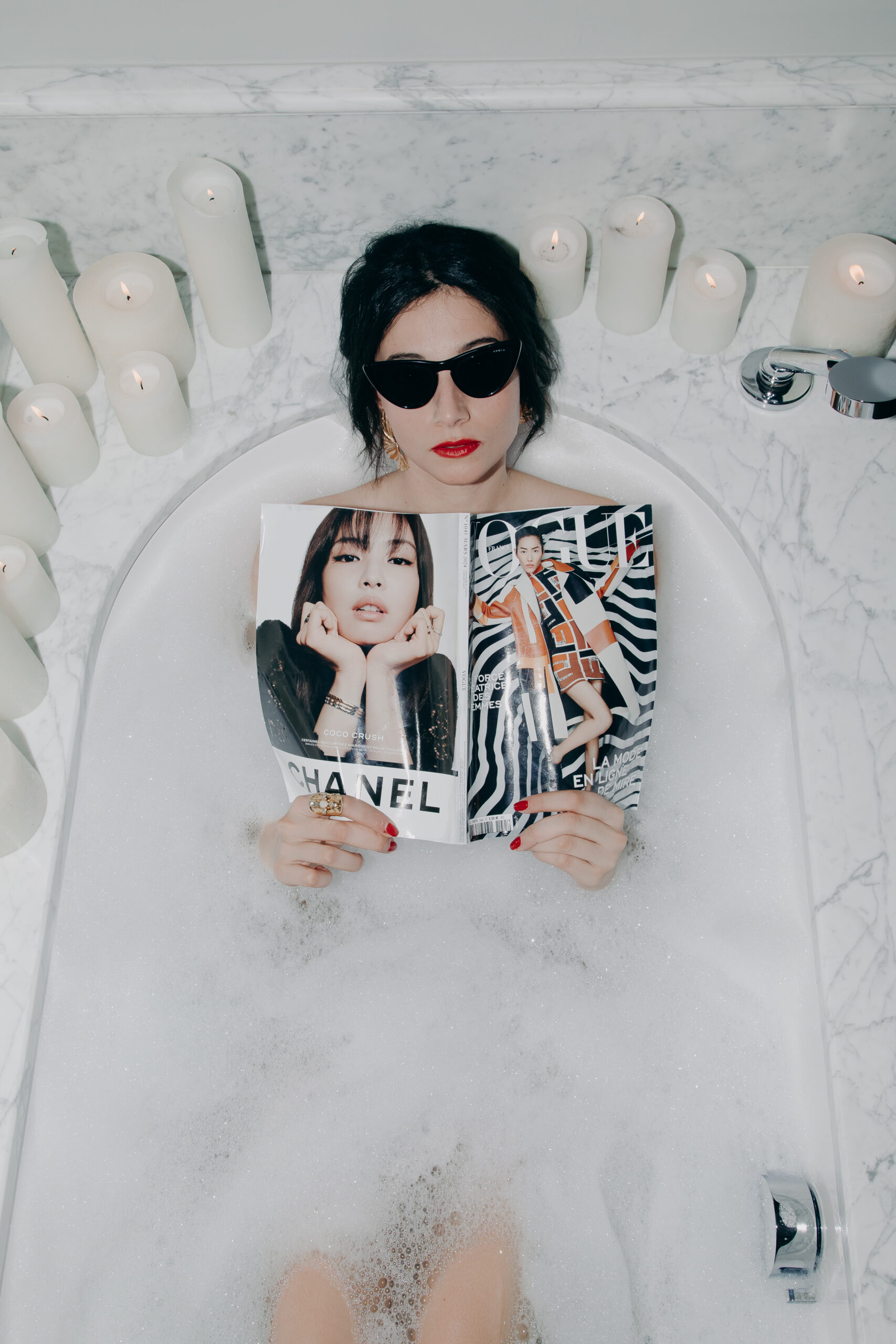 La direction artistique s’inscrit dans le prolongement de l’édition précédente. Nous retrouvons des photographies d’intérieur avec lumières fortes et flashs forcés pour un total effet Balanciaga. Les lunettes de soleil noires font honneur à un lieu symbole du cinéma français et de la cérémonie des Césars.