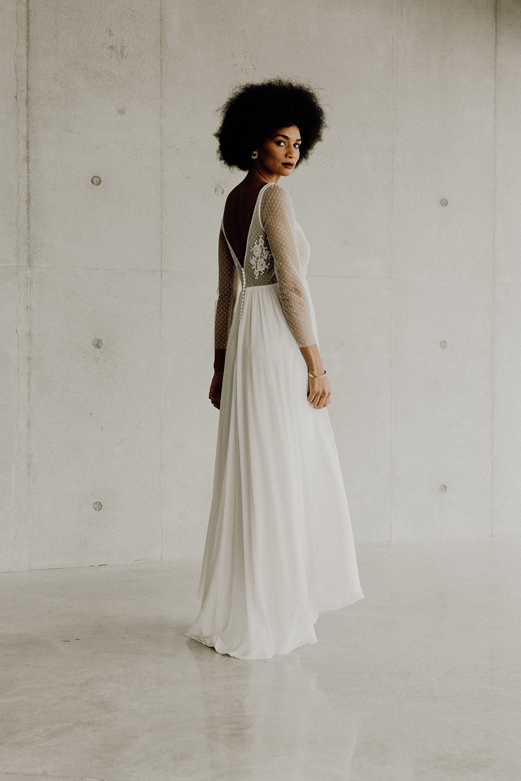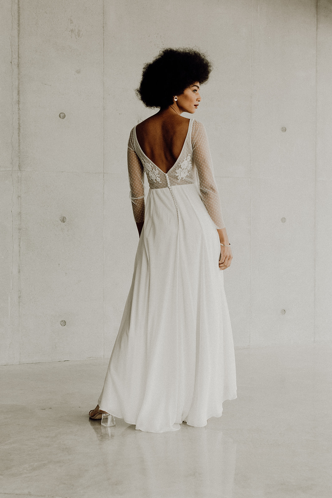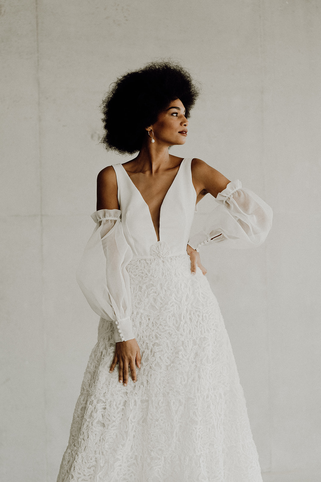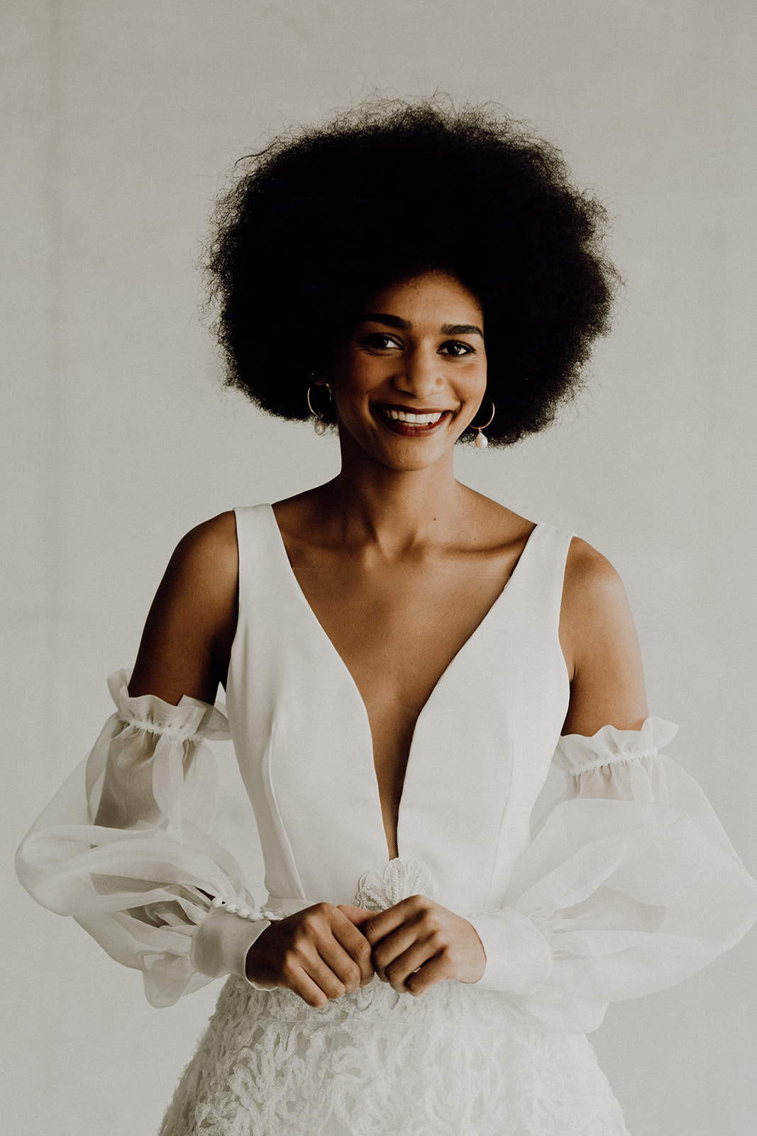 Et si c’était pour cette femme-là qu’Elise Martimort avait imaginé cette nouvelle collection 2021 ? Inspirée par toutes les futures mariées qu’elle rencontre, vivant avec chacune d’elle l’aventure de cette robe unique, qu’elles apprivoisent au fur et à mesure, un peu comme si elle se redécouvraient à travers elle.
