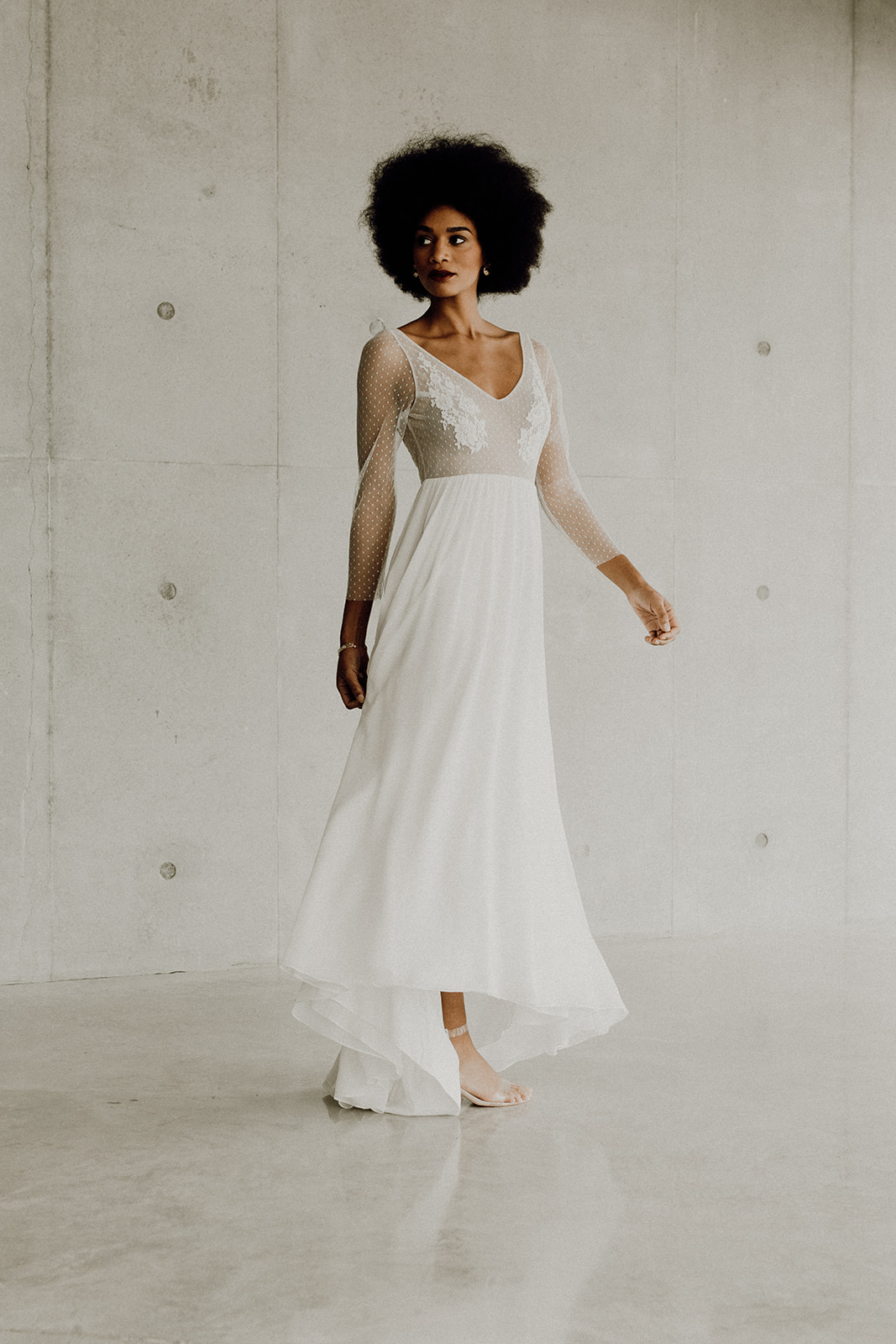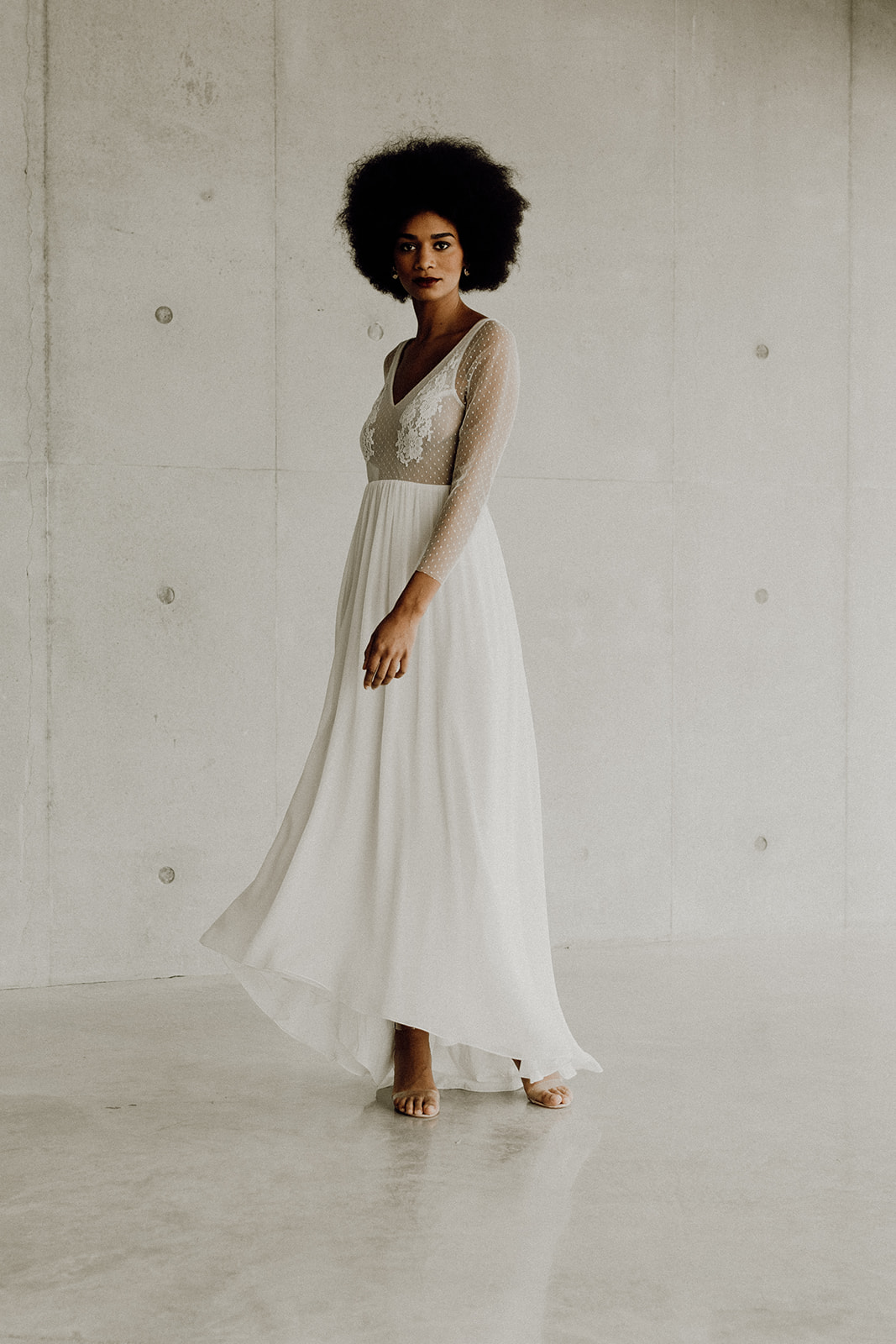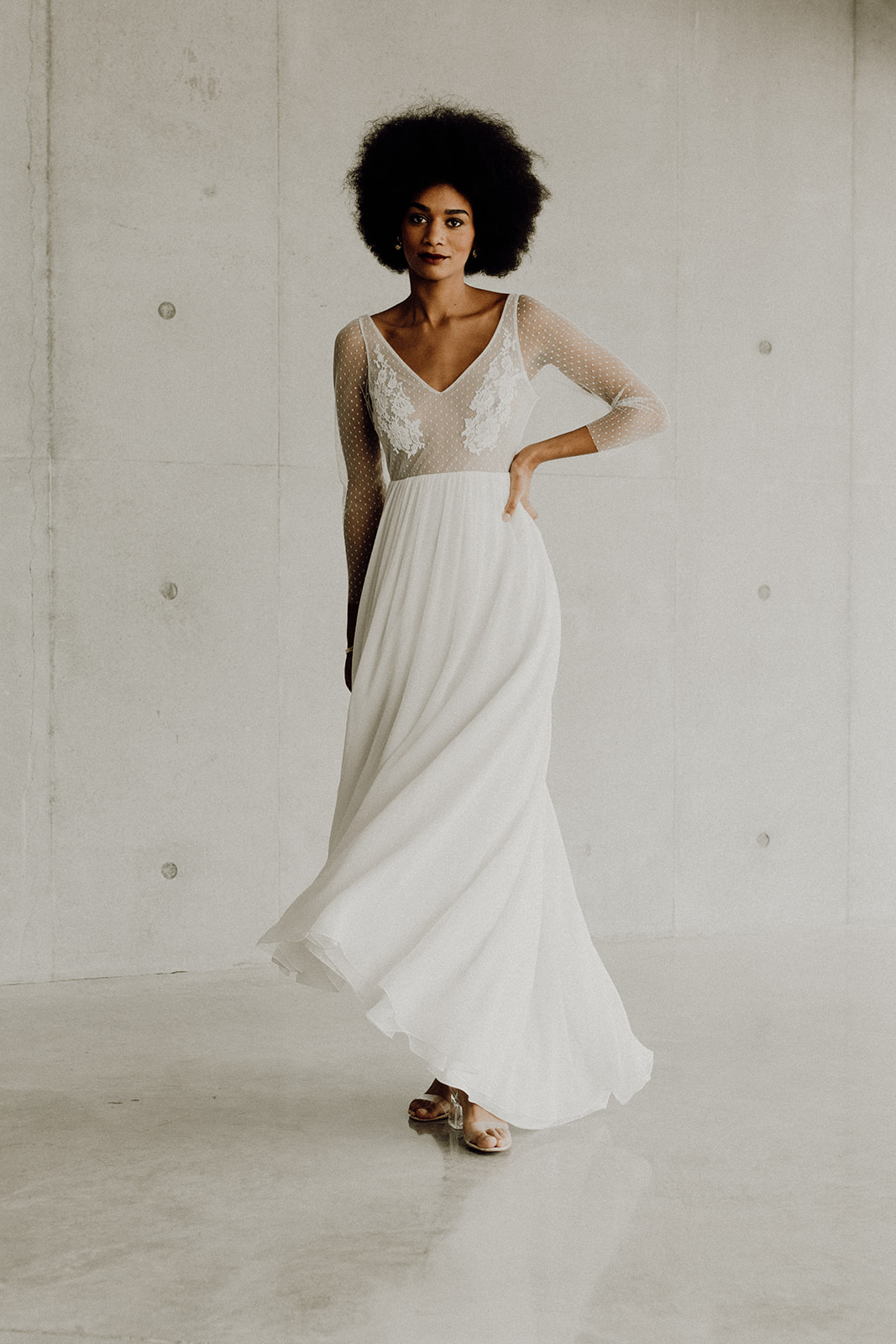 Et si c’était pour cette femme-là qu’Elise Martimort avait imaginé cette nouvelle collection 2021 ? Inspirée par toutes les futures mariées qu’elle rencontre, vivant avec chacune d’elle l’aventure de cette robe unique, qu’elles apprivoisent au fur et à mesure, un peu comme si elle se redécouvraient à travers elle.