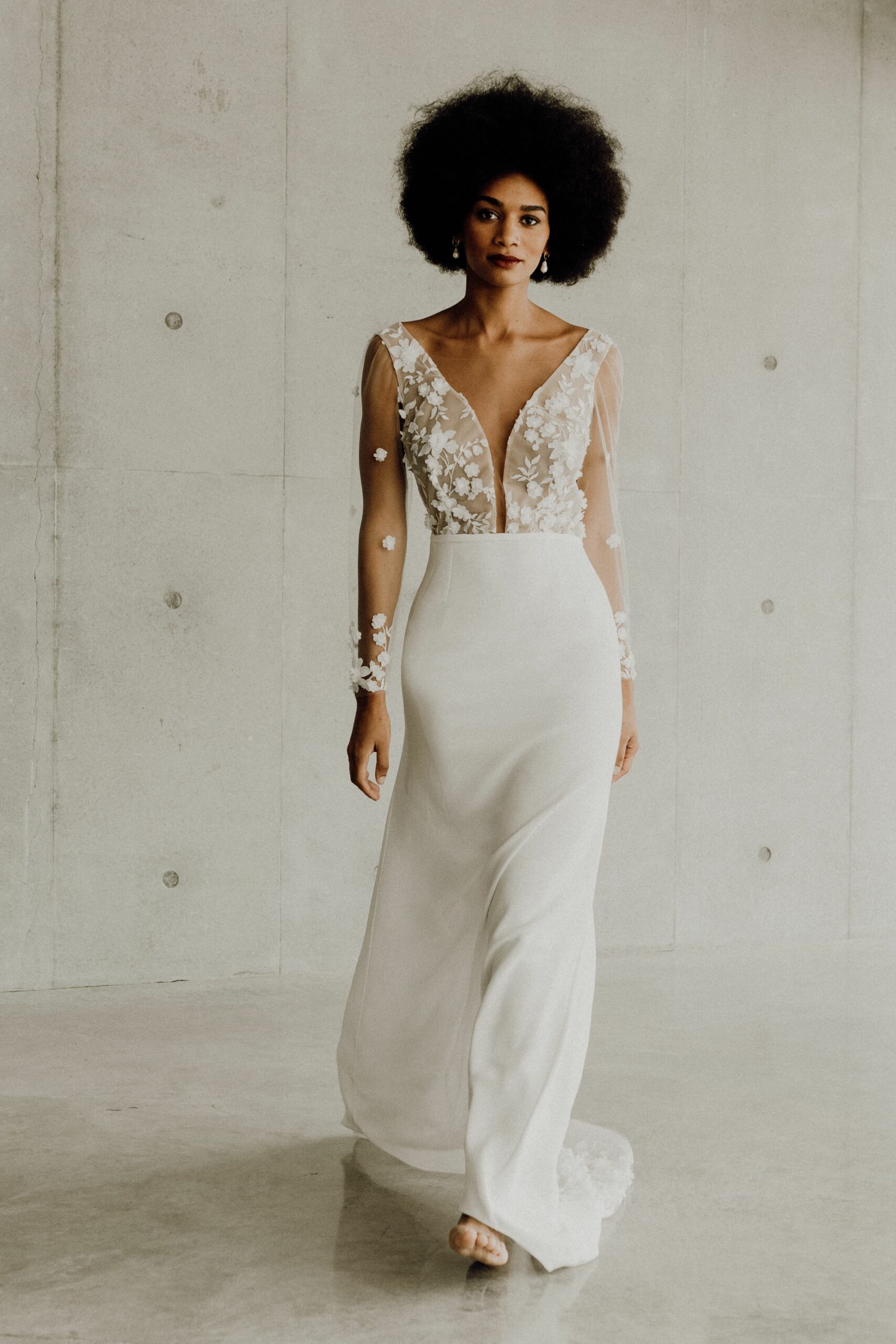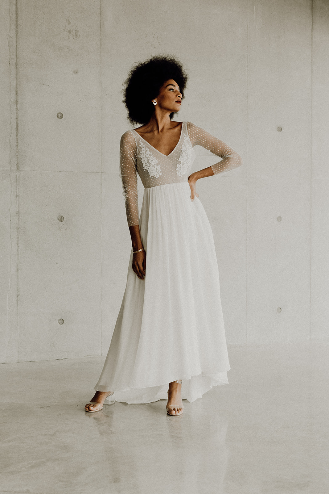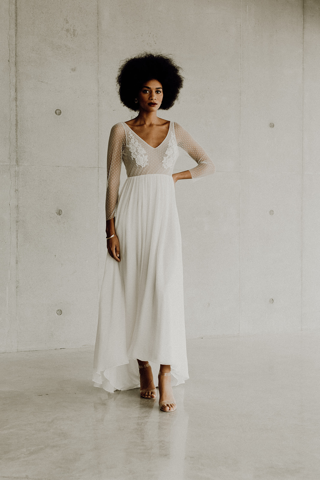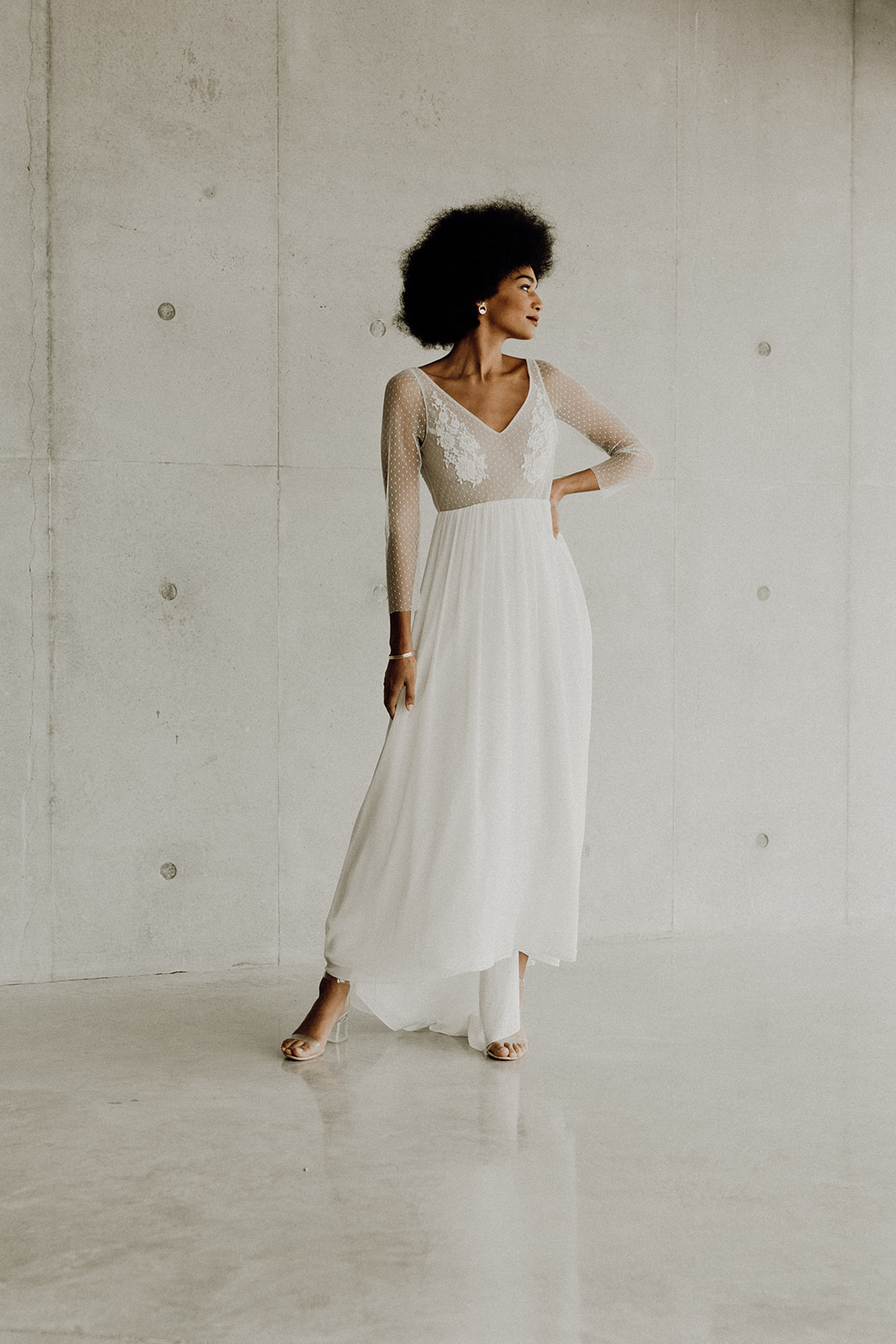 Et si c’était pour cette femme-là qu’Elise Martimort avait imaginé cette nouvelle collection 2021 ? Inspirée par toutes les futures mariées qu’elle rencontre, vivant avec chacune d’elle l’aventure de cette robe unique, qu’elles apprivoisent au fur et à mesure, un peu comme si elle se redécouvraient à travers elle.