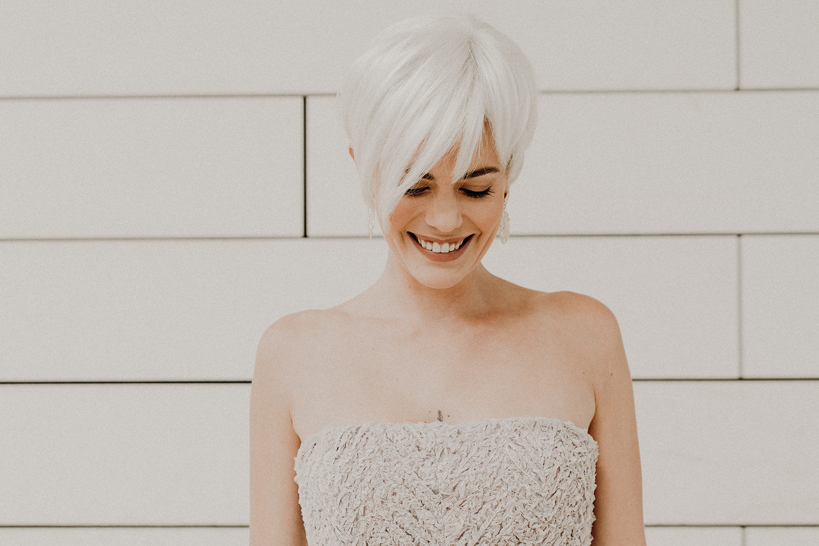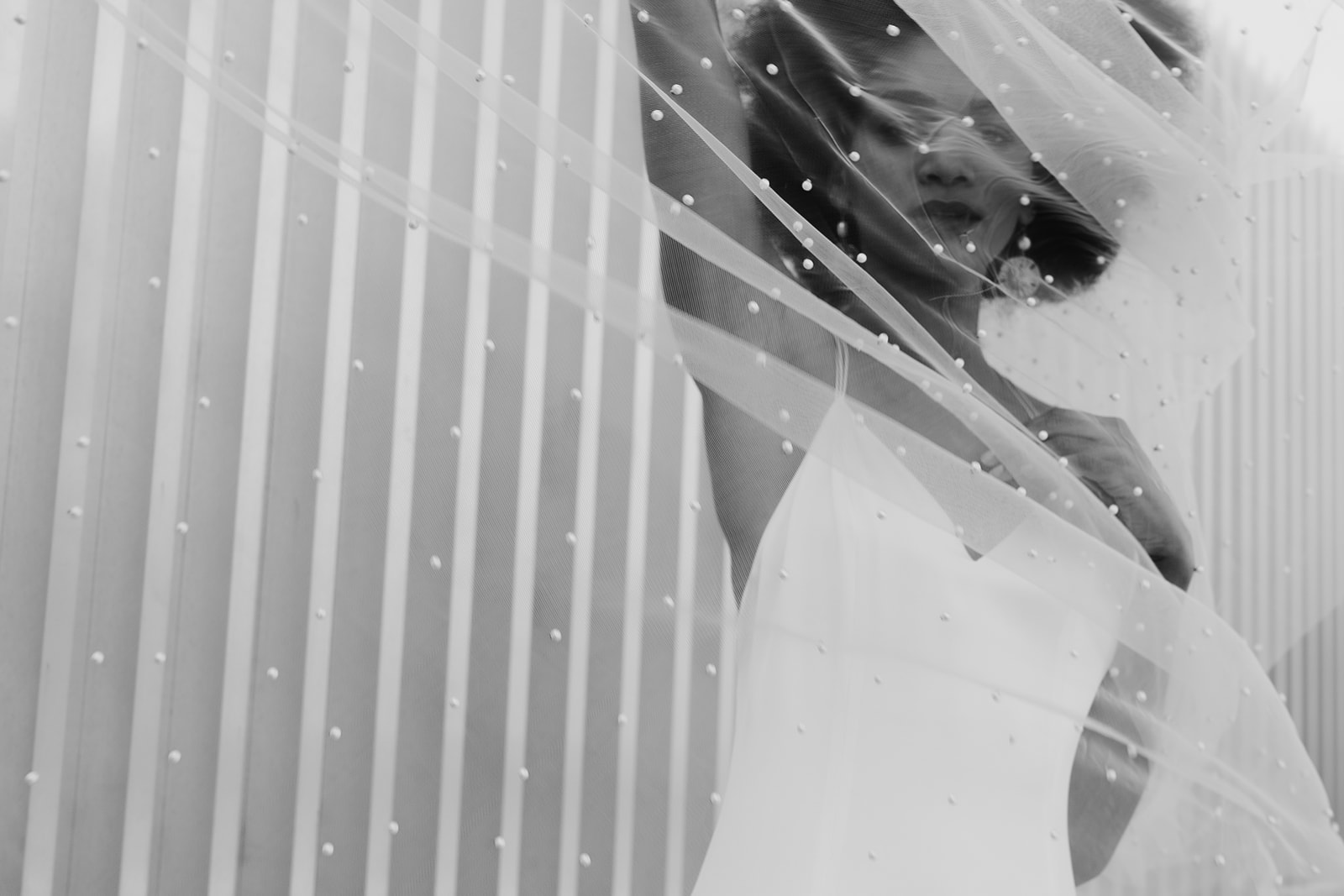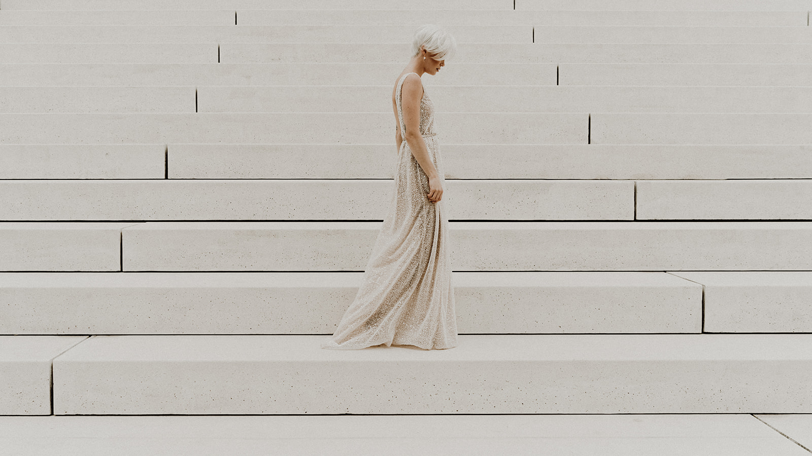 La future mariée, fébrile, cherche et se cherche à travers le blanc des étoffes précieuses, des soies légères ou des perles finement brodées. Elle se rêvait pure et graphique dans cette georgette de soie… mais la voilà chamboulée par cette pluie de paillettes et ce décolleté vertigineux qui l’entrainent dans un monde plus sensuel et audacieux. Elle se voulait légère, bohème et un brin désinvolte, mais le volume de ce tulle brodé et ce voile en cascade de fleurs la plonge dans une émotion folle… Comme si la princesse de son enfance n’était pas tout à fait endormie, en fait. Alors, qui est-elle cette mariée ?