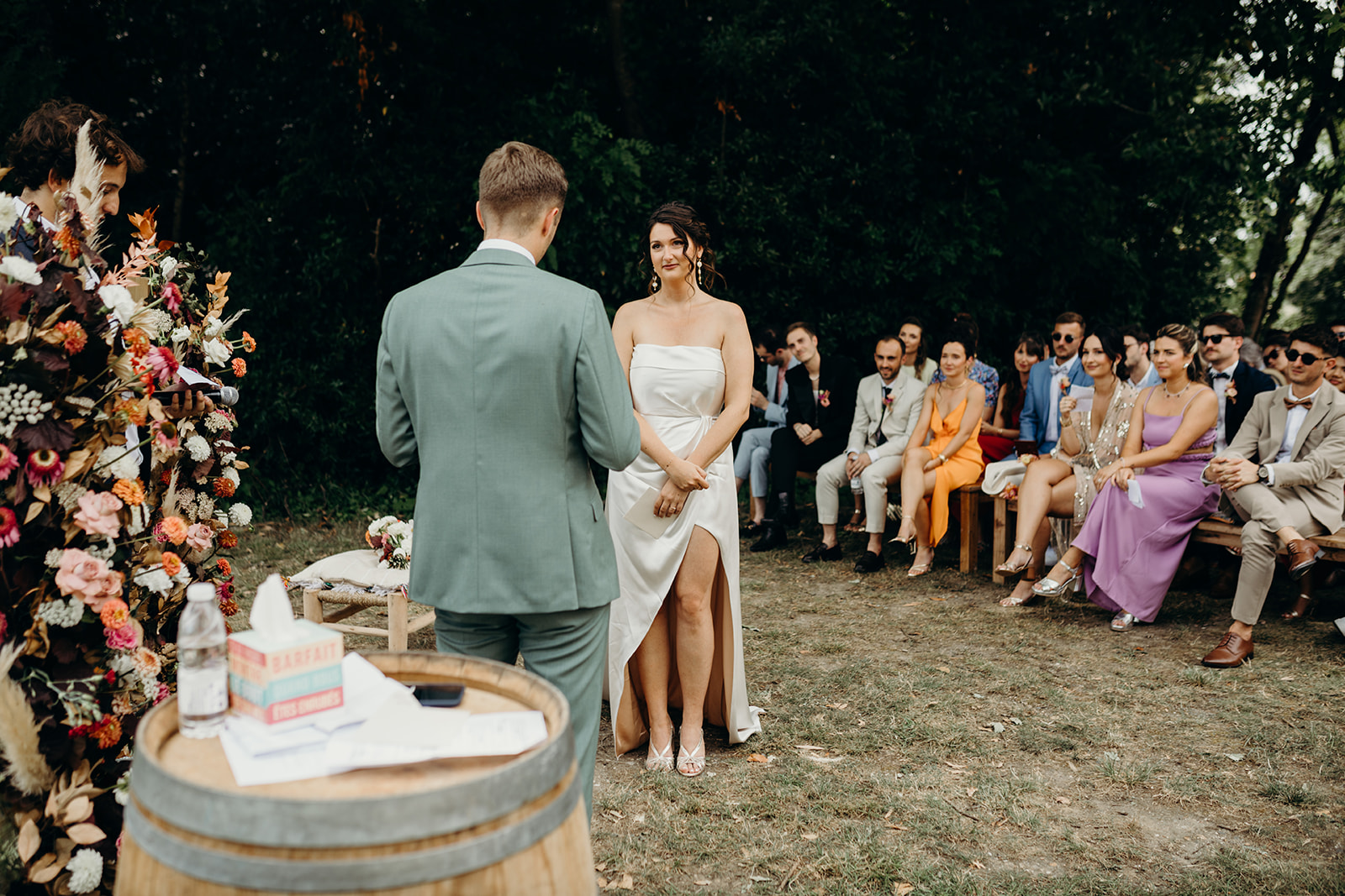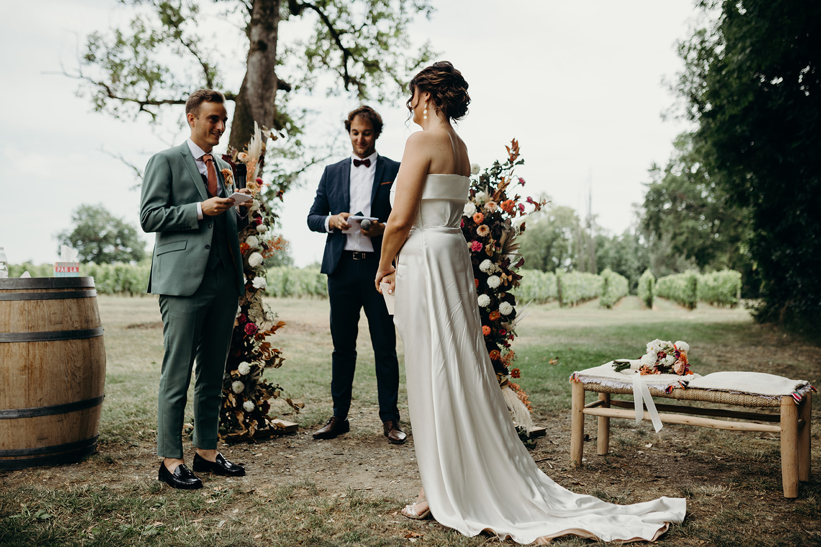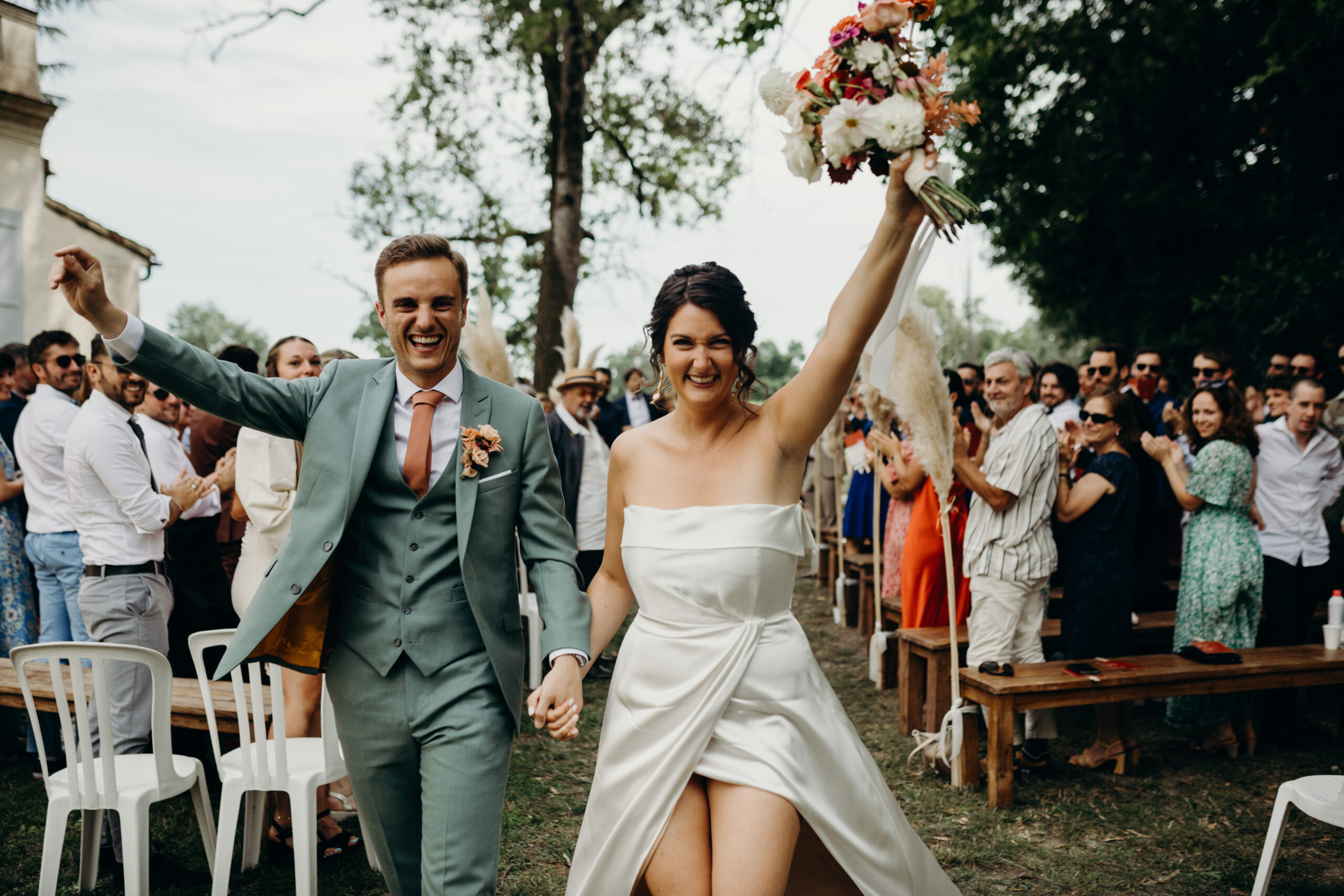 Le couple a choisi le somptueux château de L’hospital à Portets pour accueillir leur cérémonie laïque. Animé par les discours de leurs proches, le mariage a été particulièrement émouvant tout en étant moderne et guidé par une ambiance de folie !