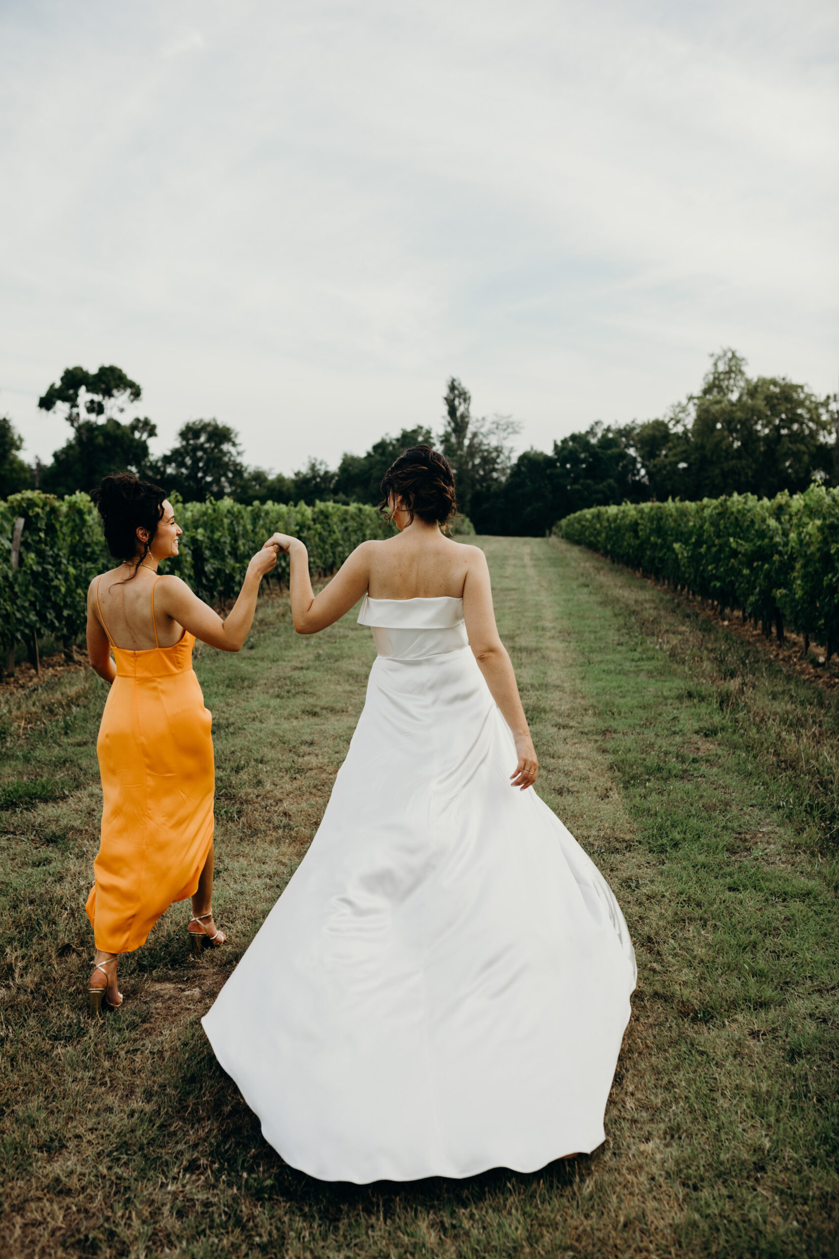 Après cela, c’est grâce à Instagram que Maëva découvre les créations d’Élise Martimort et prend rendez-vous en Août 2022. Deux robes la font véritablement hésiter, d’un côté le modèle Morgane, qu’elle surnomme « évidence », de l’autre le modèle Olympe , surnommé « challenge ».