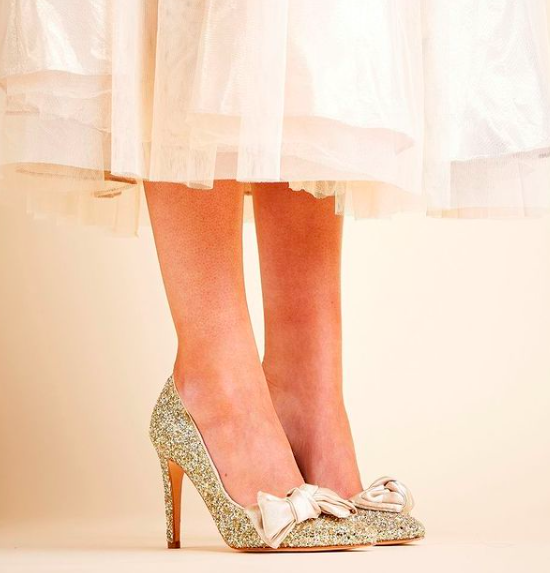 Que dire de plus que ce modèle est canon et qu’il fait partie des coups de coeur de nos filles à l’atelier. Cette jolie paire de chaussures mariage dorées se mariera parfaitement avec l’une des nombreuses robes de nos collections.