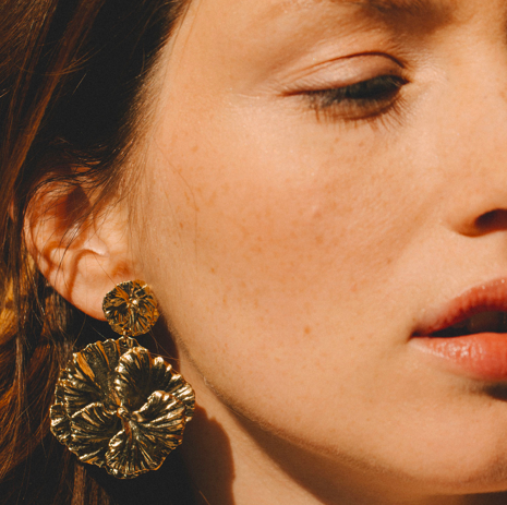 Ces boucles d’oreilles chic et tendance sont sur clou, en laiton doré à l’or fin ne contenant pas de nickel ni aucune matière allergisante. Une parfaite combinaison avec nos robes et combinaison de la collection civile 2022 CRAZY DIAMOND.