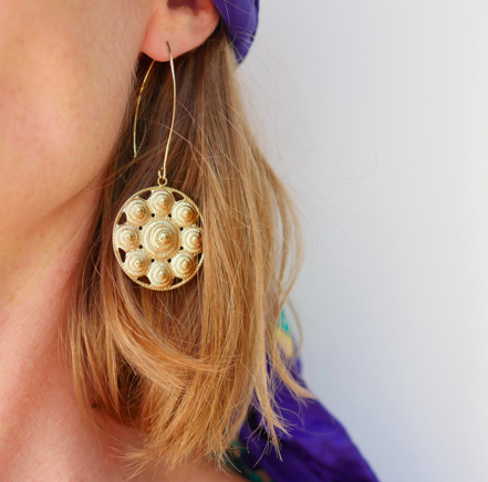 Cette paire de boucle d’oreille dorée est idéale pour un mariage ou une tenue chic et élégante. Boucles d’oreilles en laiton doré à l’or fin ne contenant pas de nickel ni aucune matière allergisante. Une parfaite combinaison pour aller avec nos robes de la collection 2022 EMPOWERMENT.