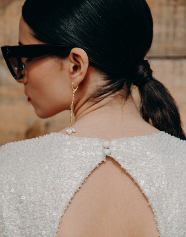 Cette jolie paire de bo chic est idéale pour un mariage ou une tenue tendance et élégante. Les puces sont doré en laiton doré à l’or fin ne contenant pas de nickel ni aucune matière allergisante. Une parfaite combinaison pour aller avec nos robes de la collection civile 2022 CRAZY DIAMOND.
