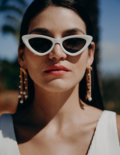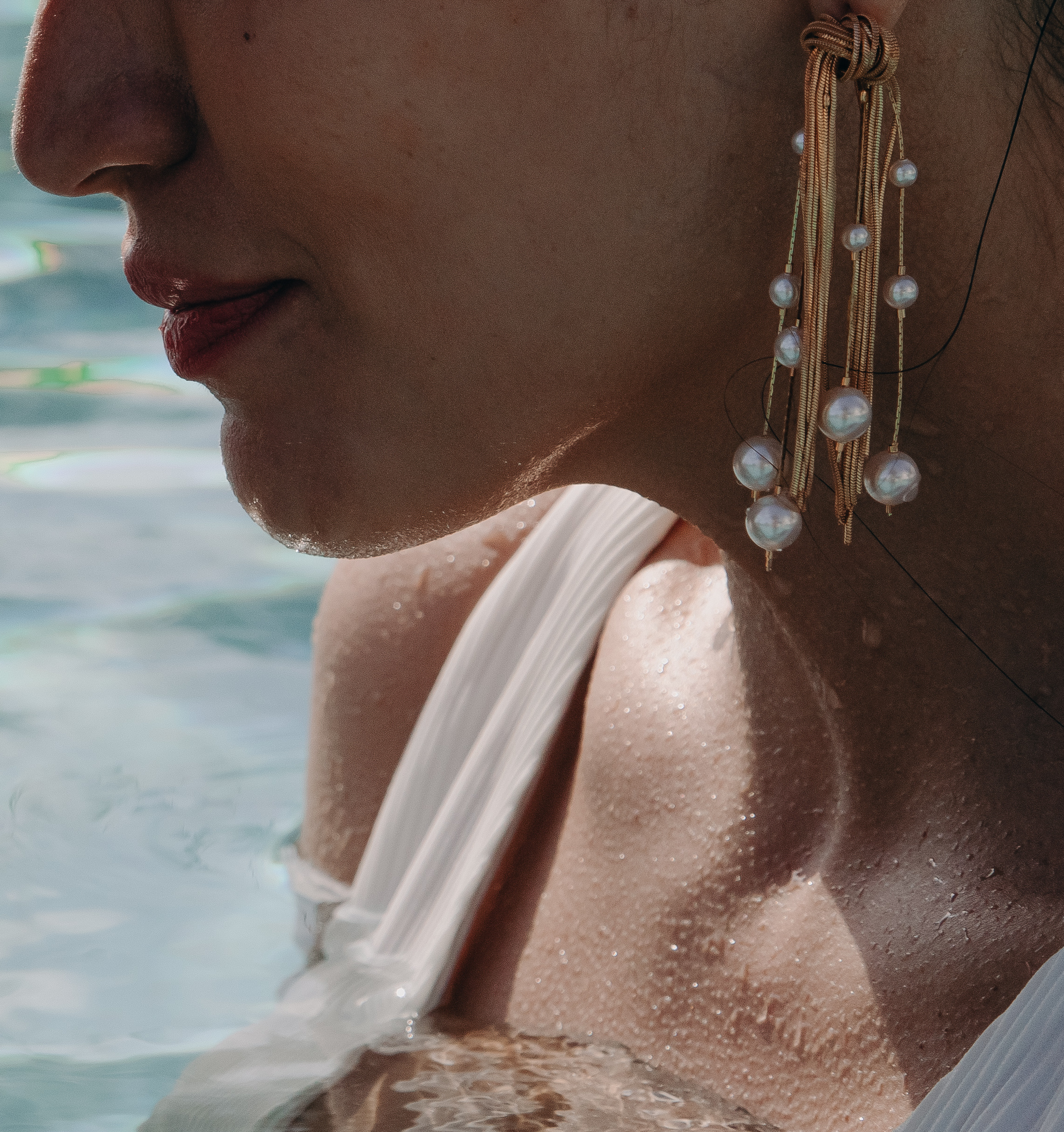 Boucles d’oreilles avec gros noeuds en chaine serpentine, agrémentées de perles nacrées de 4,6 et 8 mm.
