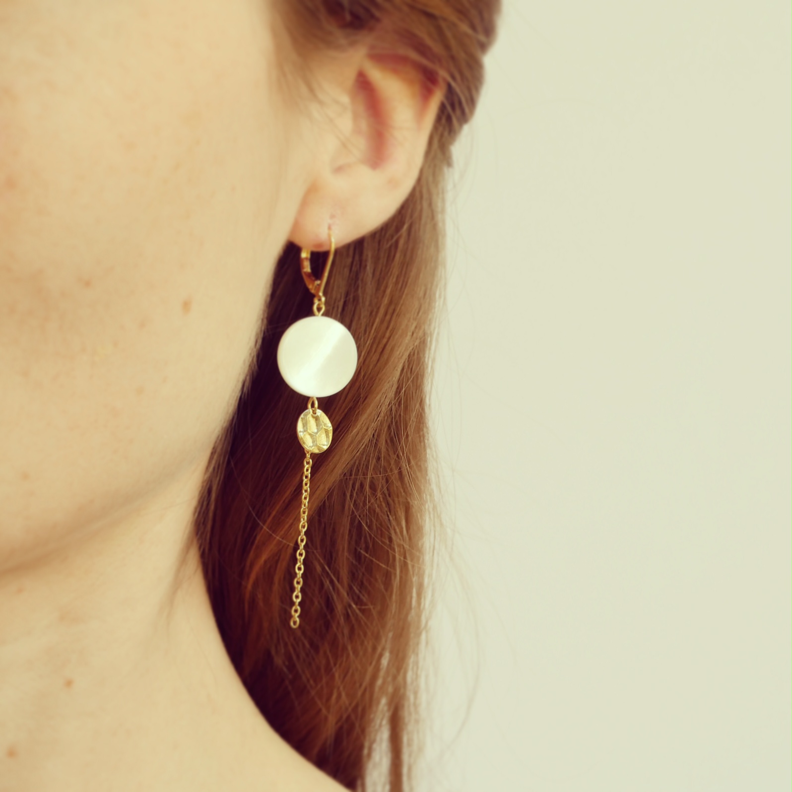 Boucles d’oreilles en laiton doré à l’or fin 0.5 microns ne contenant pas de nickel ni aucune matière allergisante.
