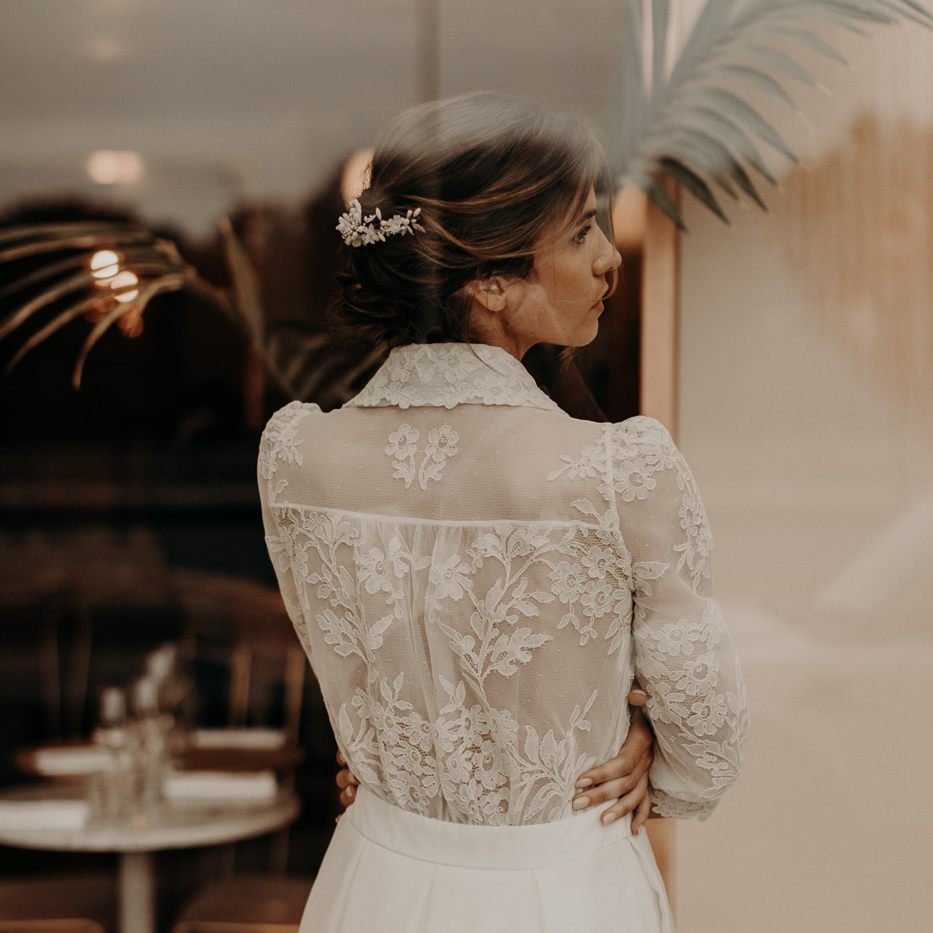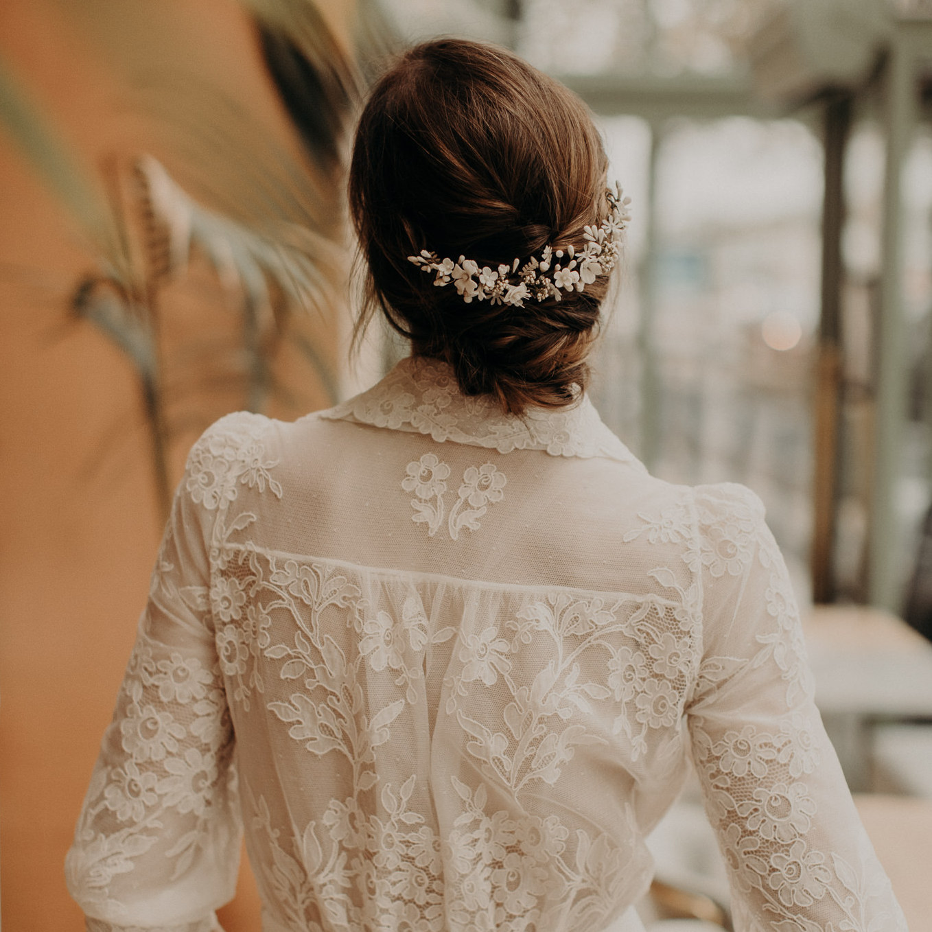 Ce nouvel accessoire mélange une profusion d’éléments que Sidonie fabrique à la main (et une touche de fleurs éternelles). On aime son coté généreux et minutieux qui lui donne un véritable côté romantique à votre chignon. Il est long d’environ 20 cm et se fixe avec des épingles à chignon.