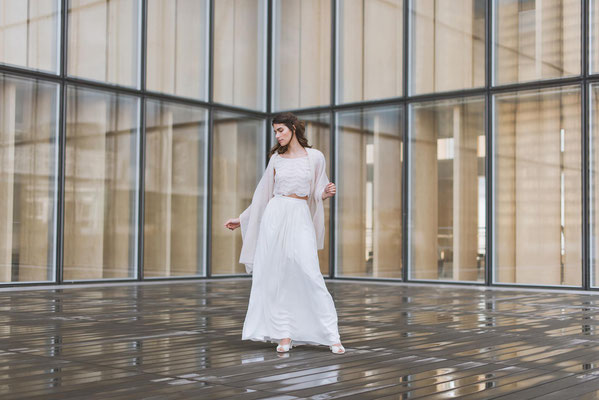 Je rêve d’une mariée en douceur, féminité, évanescence et poésie, qui tout en assumant les impératifs de la cérémonie, devienne l’interprète iconique de cette journée symbolique.