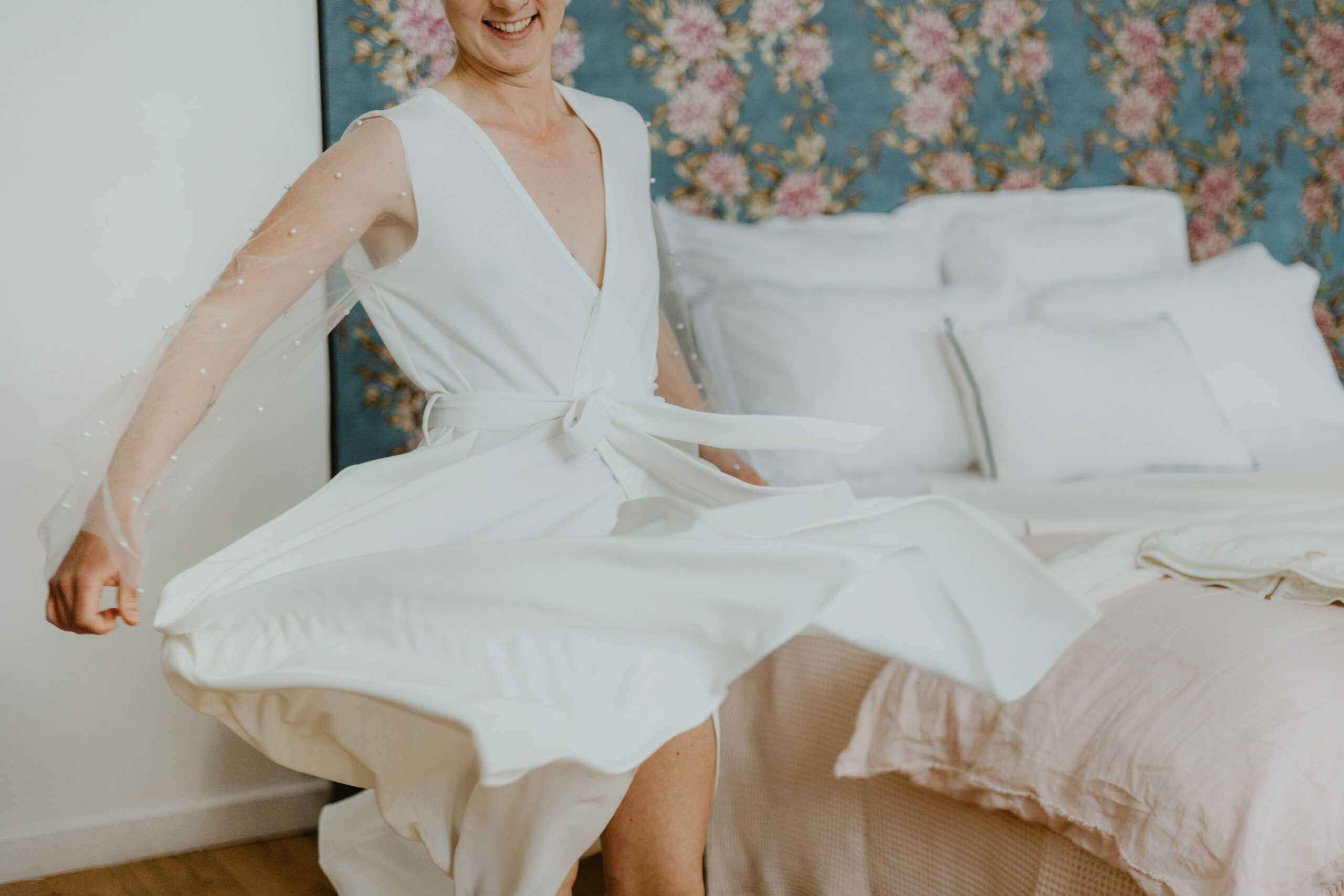 Pour être la plus belle tout au long de la journée ! Profitez des préparatifs pour vous glisser dans une jolie pièce toute en douceur et en transparence.