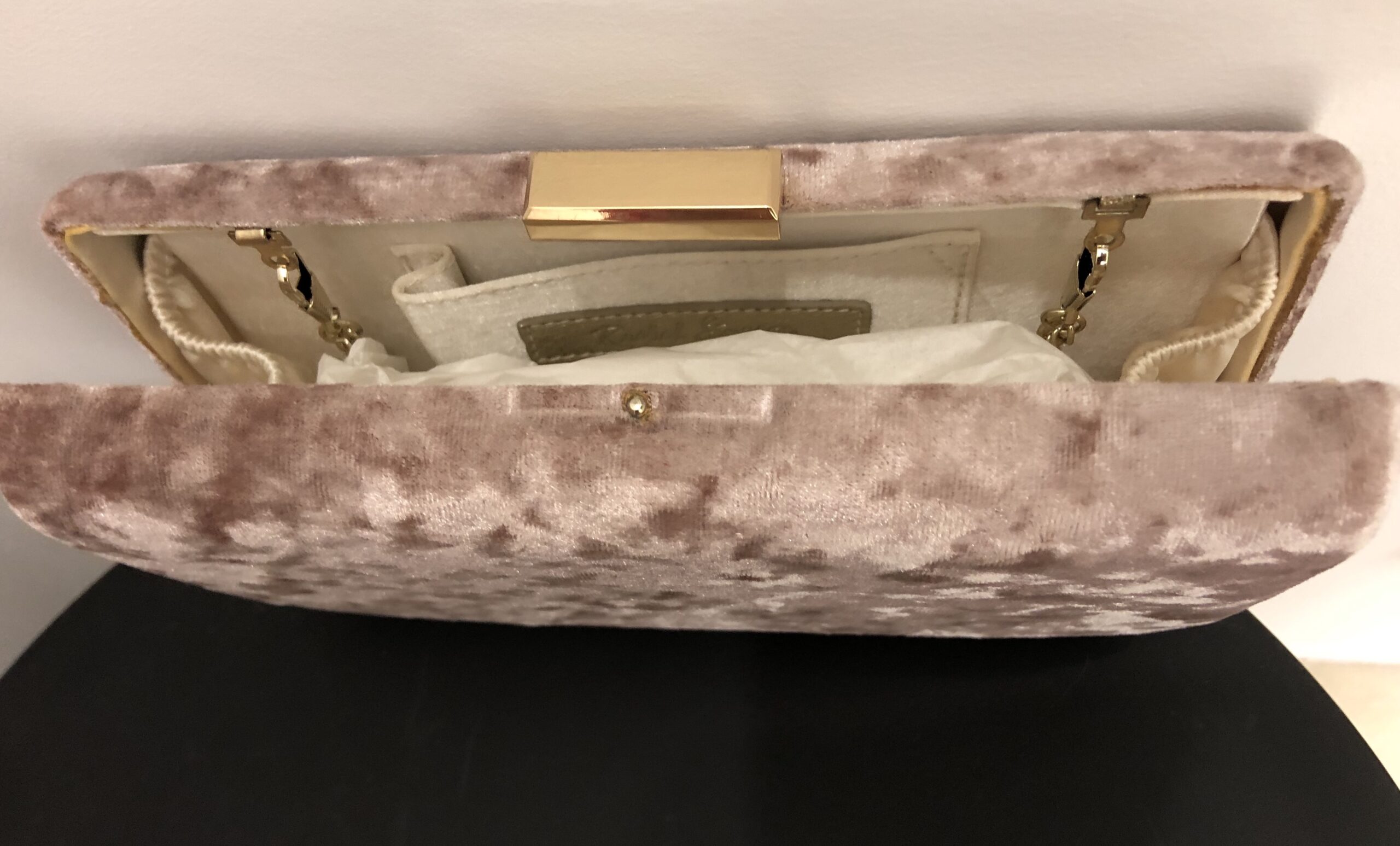 La pochette Odessa a été conçue à partir d’un beau velours mauve et dispose d’une fermeture simple : push and click. Ce sac est ultra-cool et c’est la taille parfaite pour vos sorties quotidiennes. Odessa dispose également d’une chaîne en or détachable pour le changer en sac à bandoulière si vous souhaitez le porter d’une autre manière. Vous pourrez associer ce sac à toutes les robes de notre collection civile.
