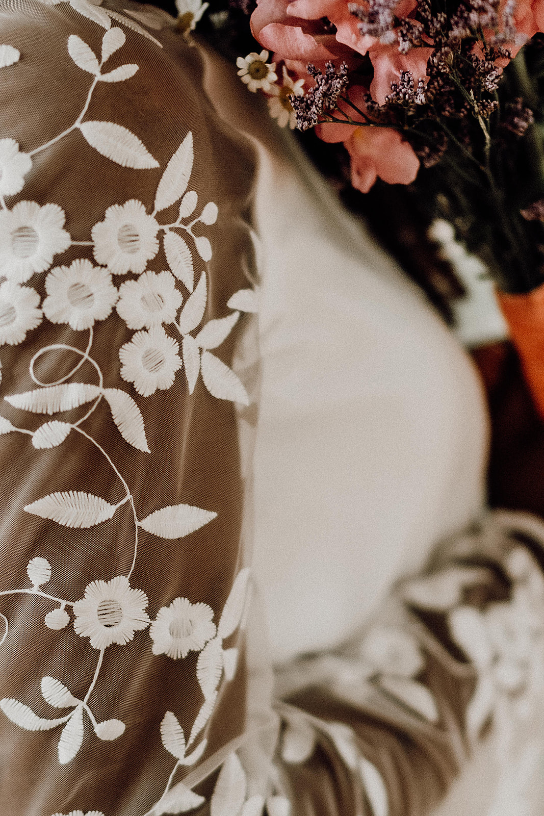 Georgette de soie, tulle brodé .
