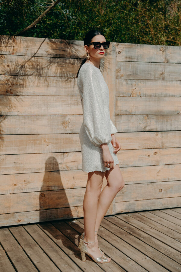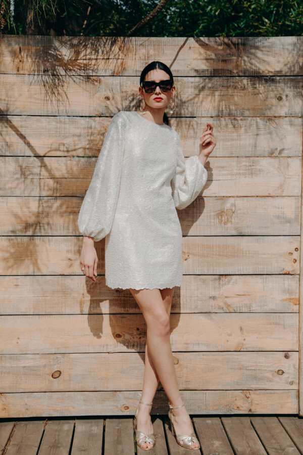 Cette petite robe chic en lamé de soie perlée à tout d’une grande pour un mariage civil ! Le raffinement de son tissu est d’une rare élégance et ne saurait laisser indifférent.