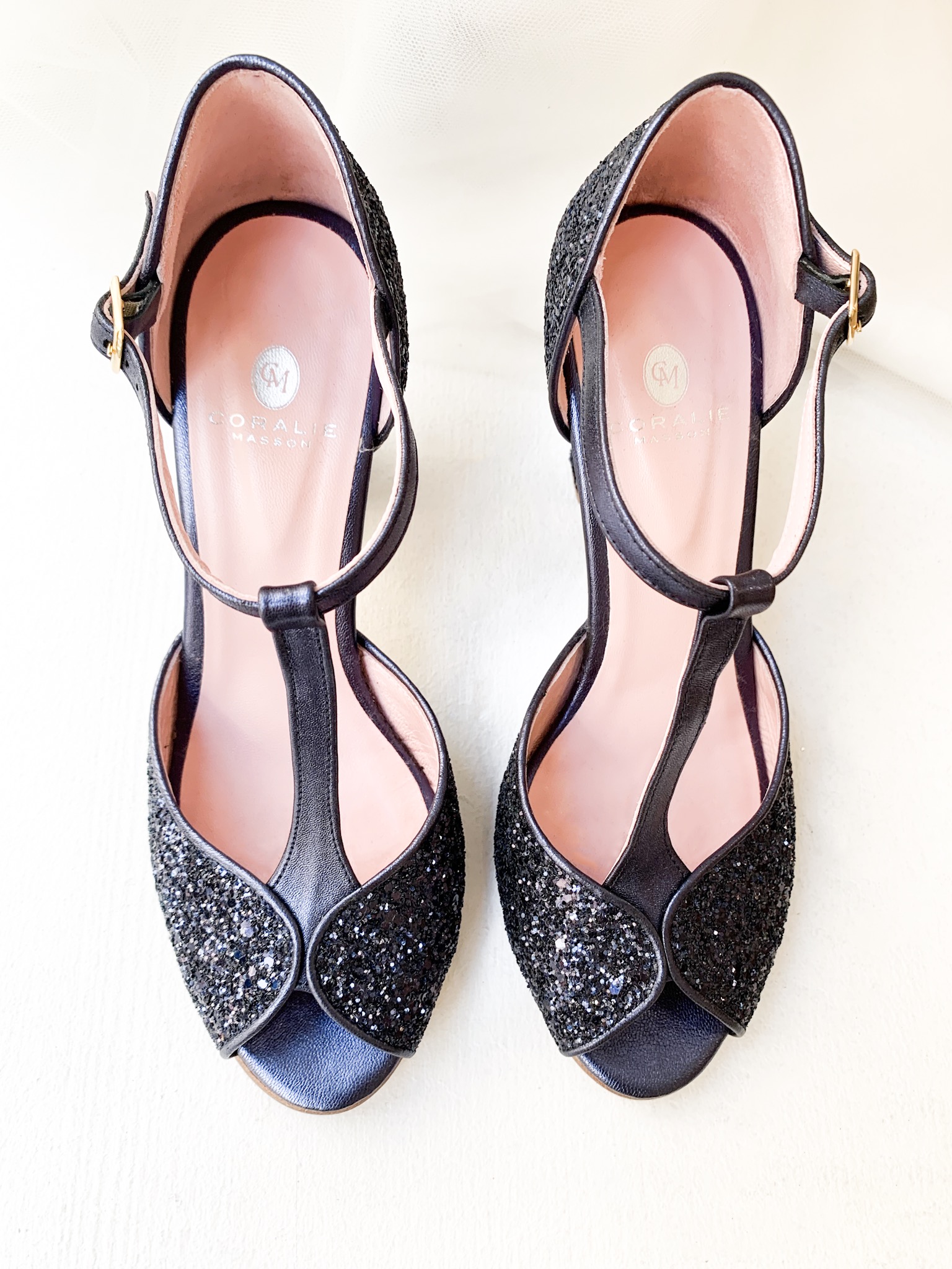 Pour cette collaboration Elise Martimort a revisité les Satanas de Coralie Masson pour les rendre à son image : des escarpins bleu pour un mariage pétillant. C’est donc avec de jolies escarpins paillettes bleu nuit que les deux créatrices ont imaginé cette nouvelle chaussure parfait pour un mariage. Combo parfait avec une de nos robes civiles